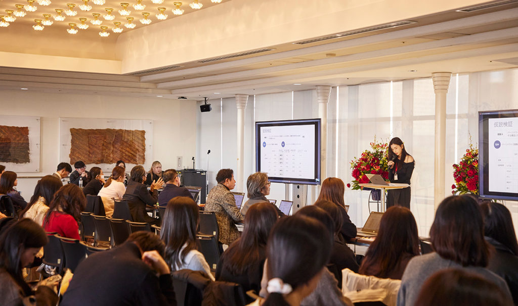 ファッション経営管理コース2年次による修了研究発表と、1年次による先行研究発表を行います。