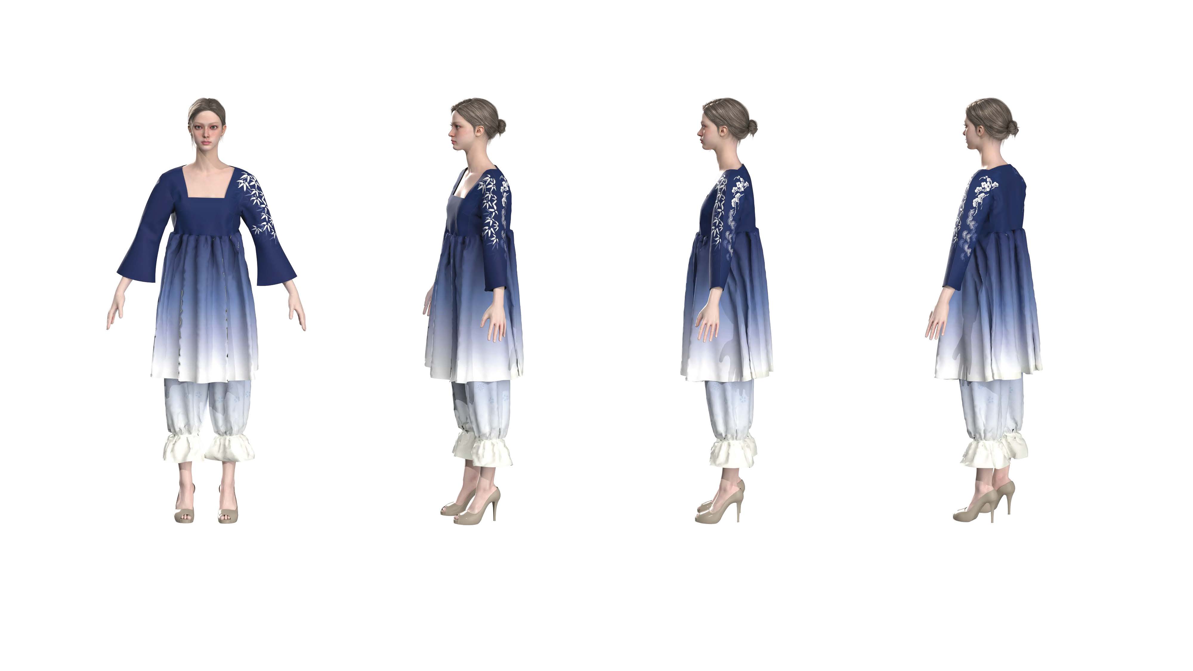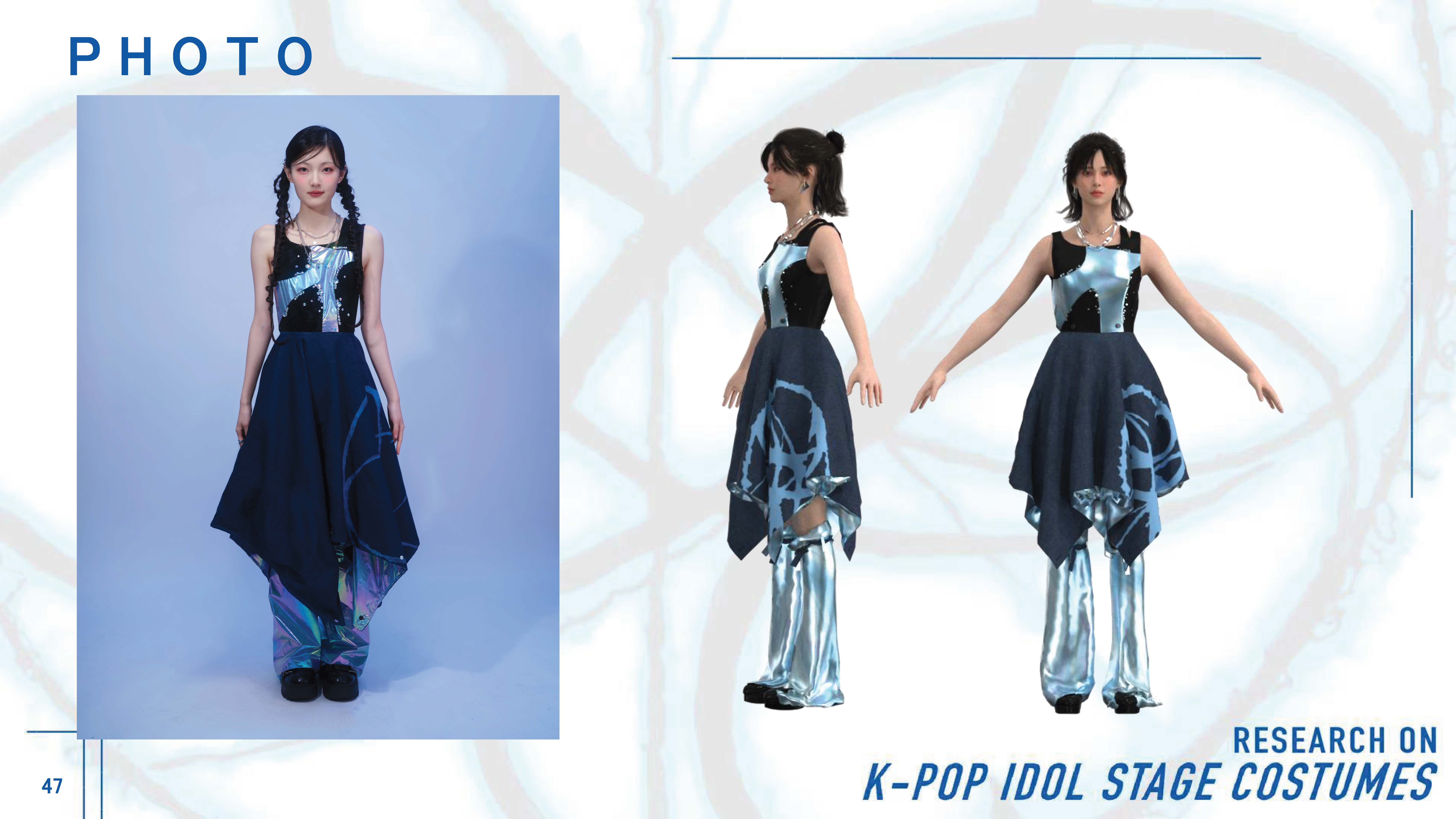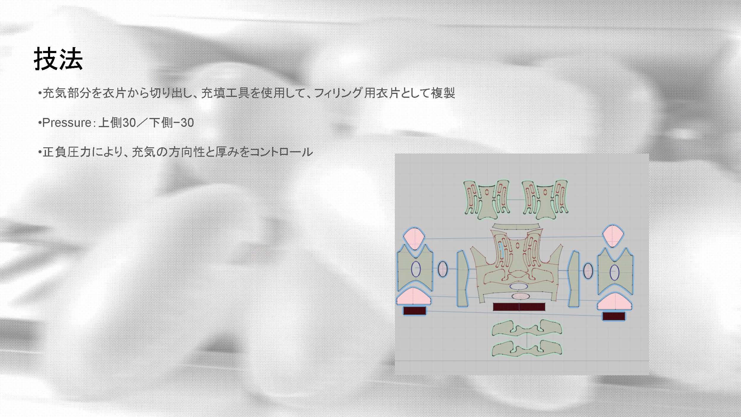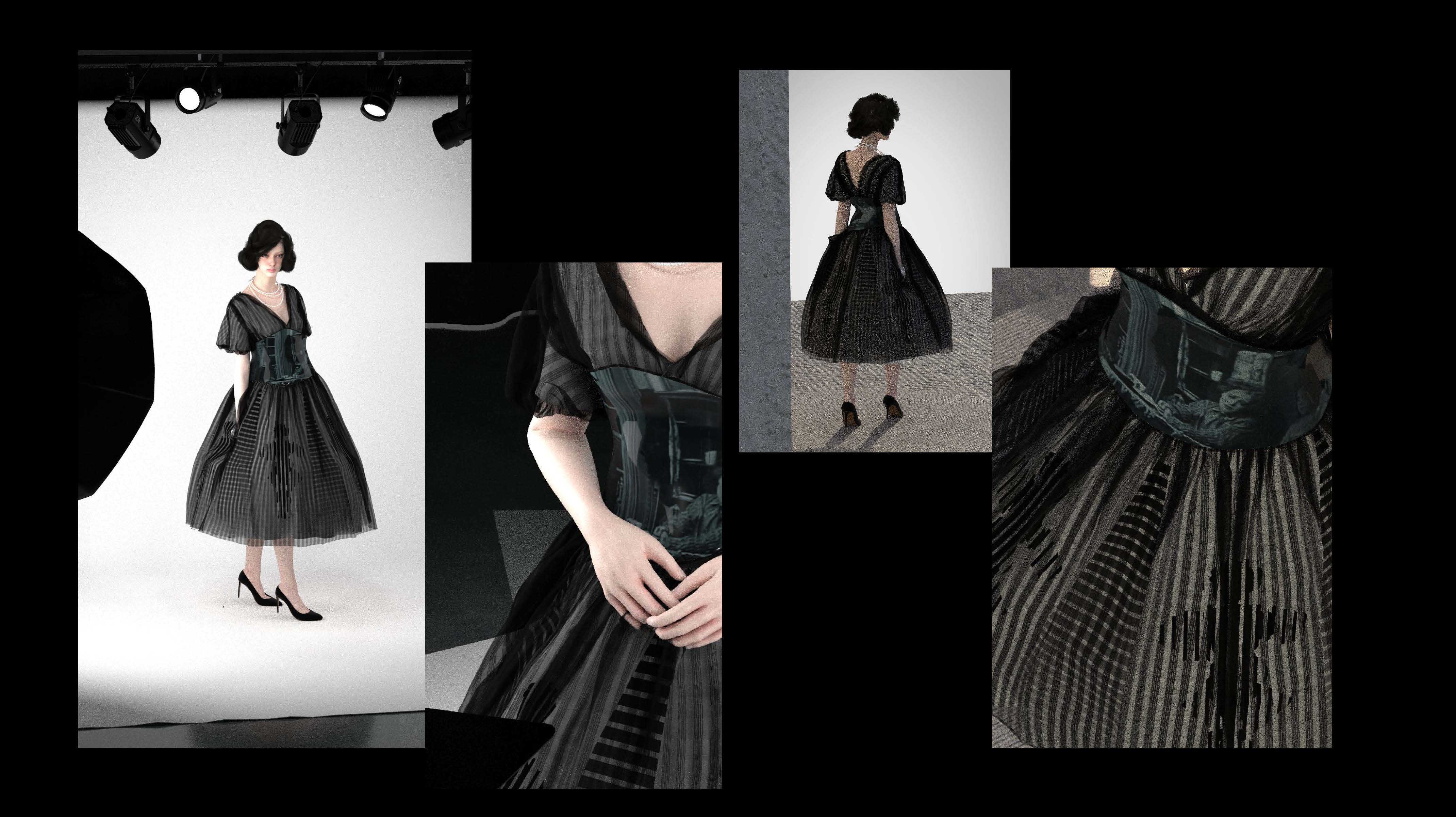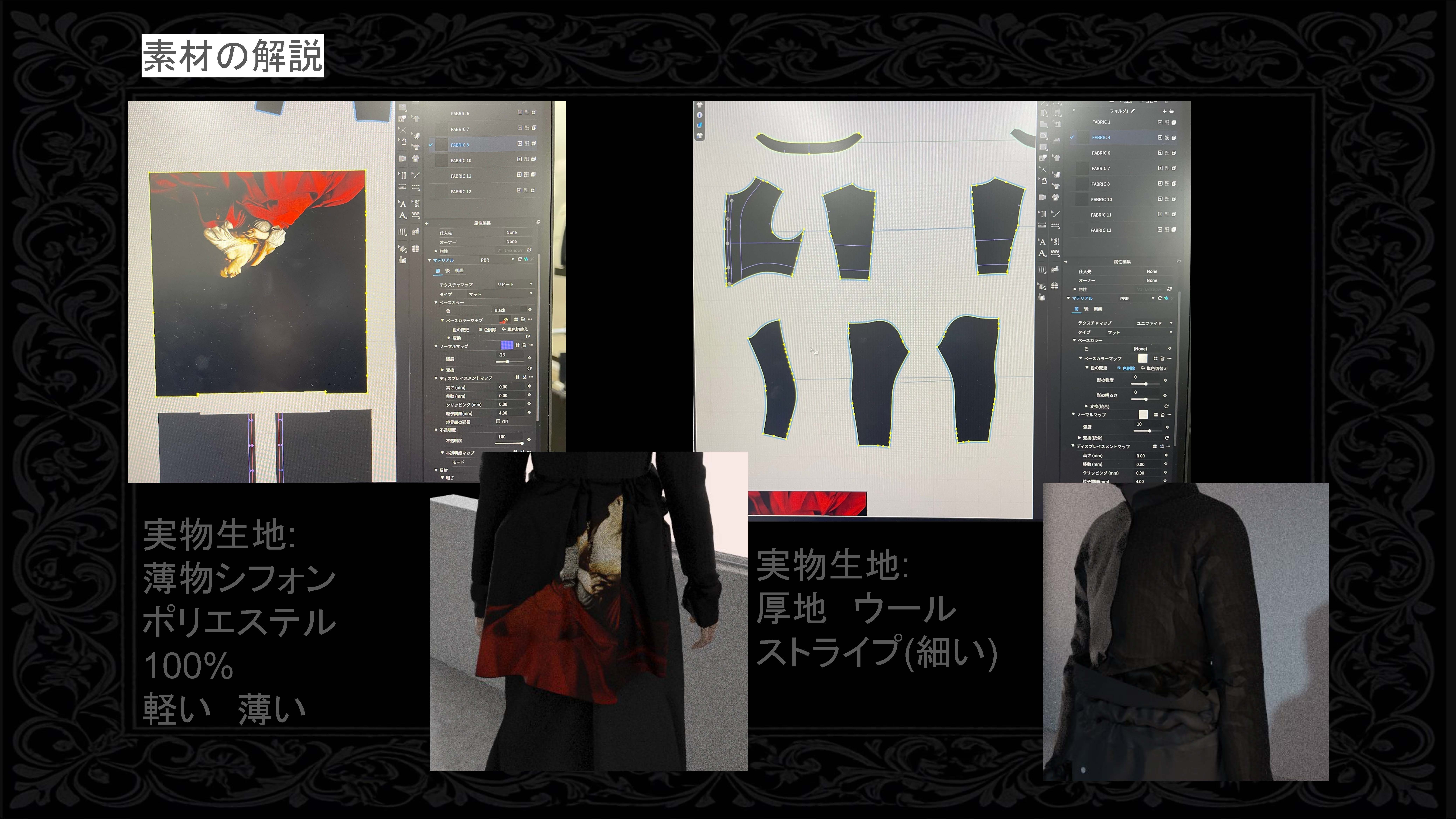 院生の研究や作品制作に アパレル3DCAD「CLO Enterprise」を活用する取り組みを積極的に行っています。 2020年度より、CLO Enterpriseの基礎オペレーションを学ぶ「アパレル3DCADⅠ」と、応用オペレーションを学ぶ「アパレル3DCADⅡ」を開講し、アパレル企業へ3Dデザイナー、3Dモデリストを輩出しております。ファッションクリエイション専攻の受講生の中より選抜された院生の作品を紹介いたします。