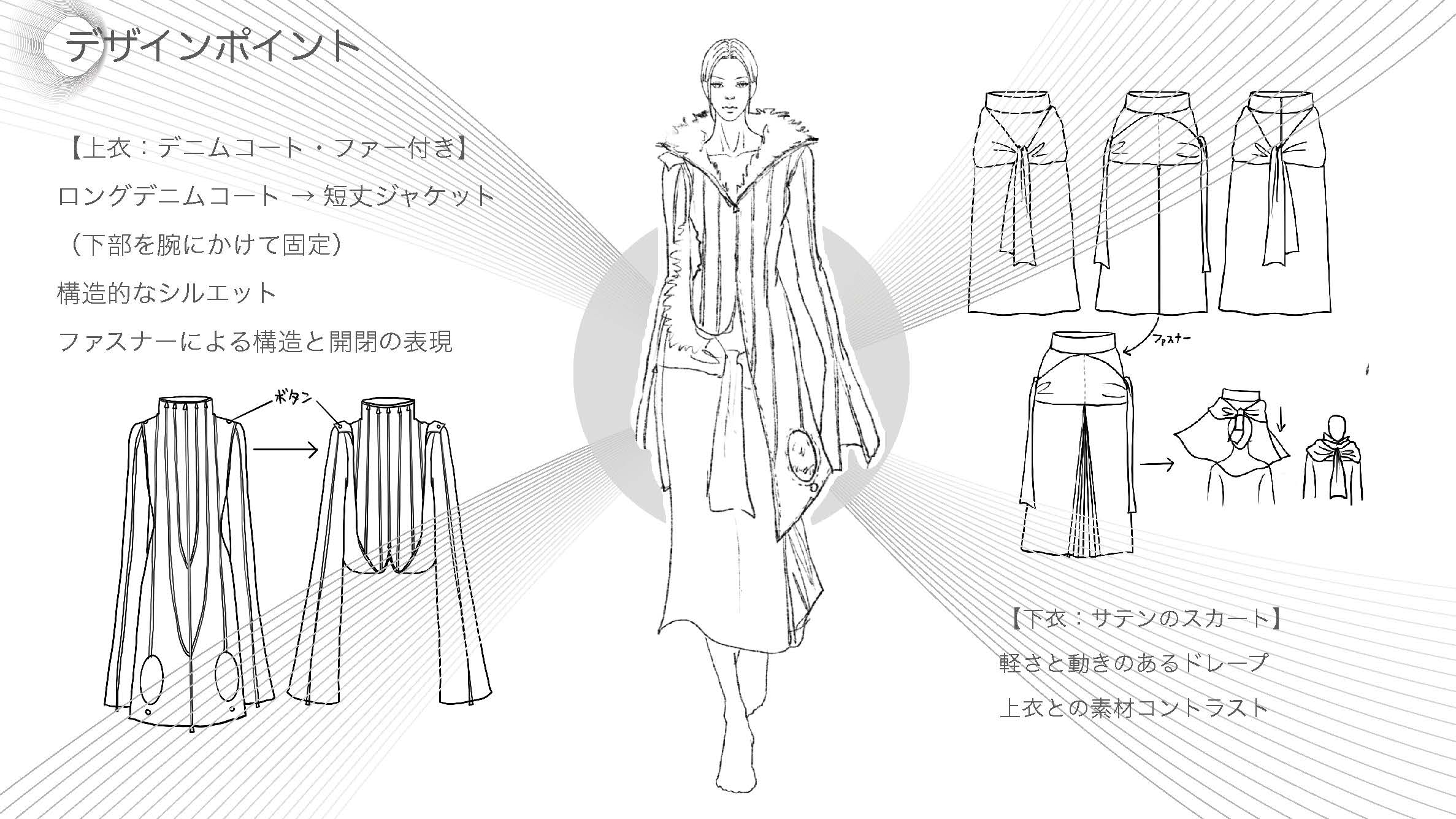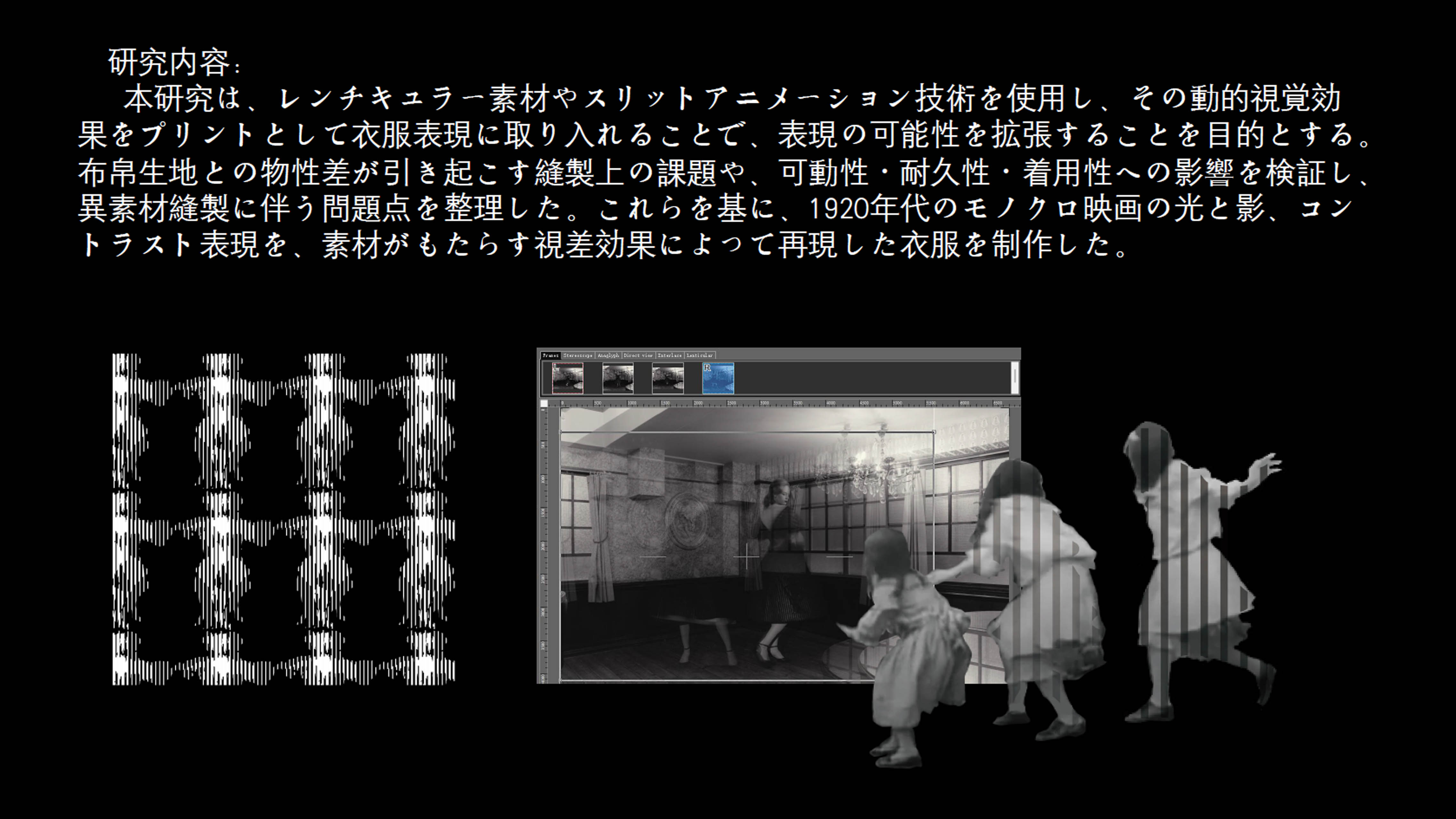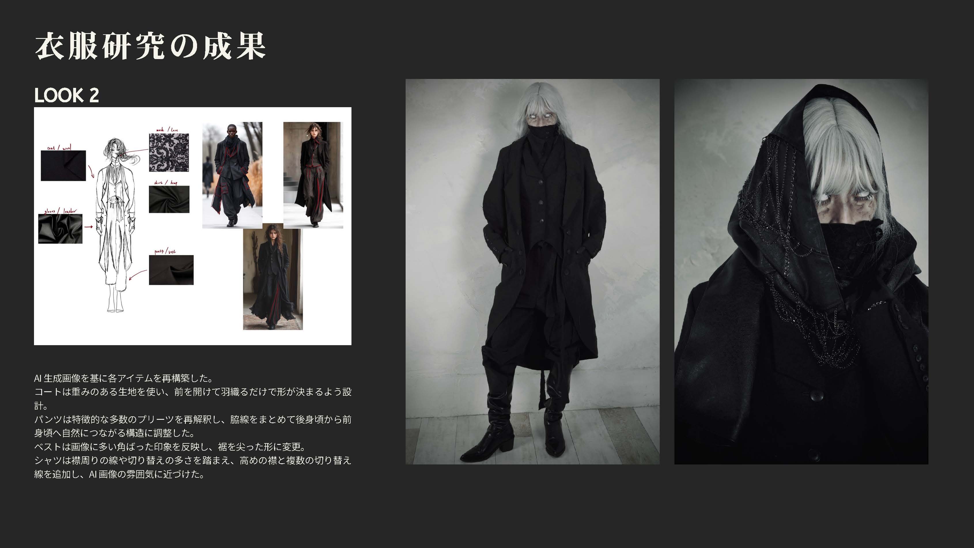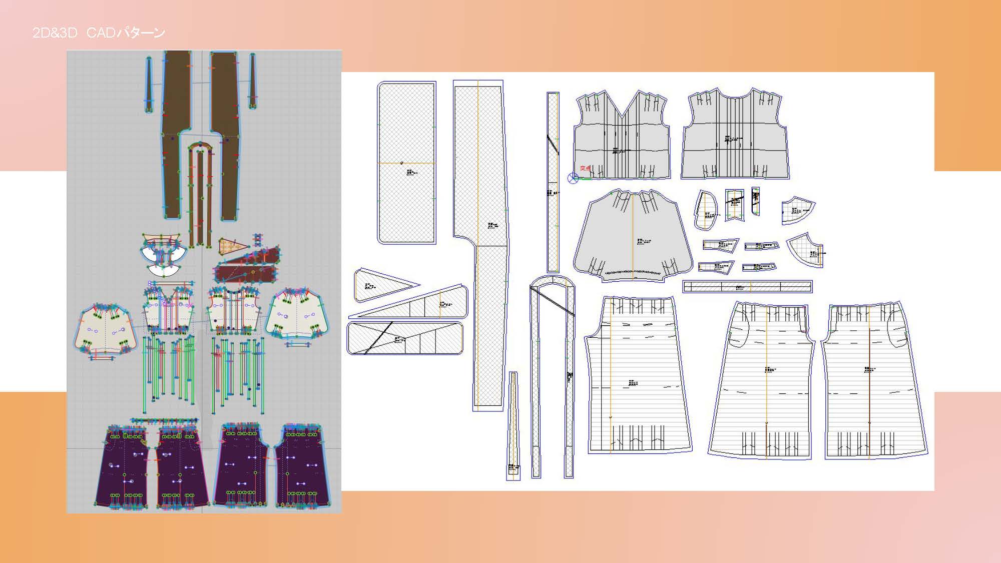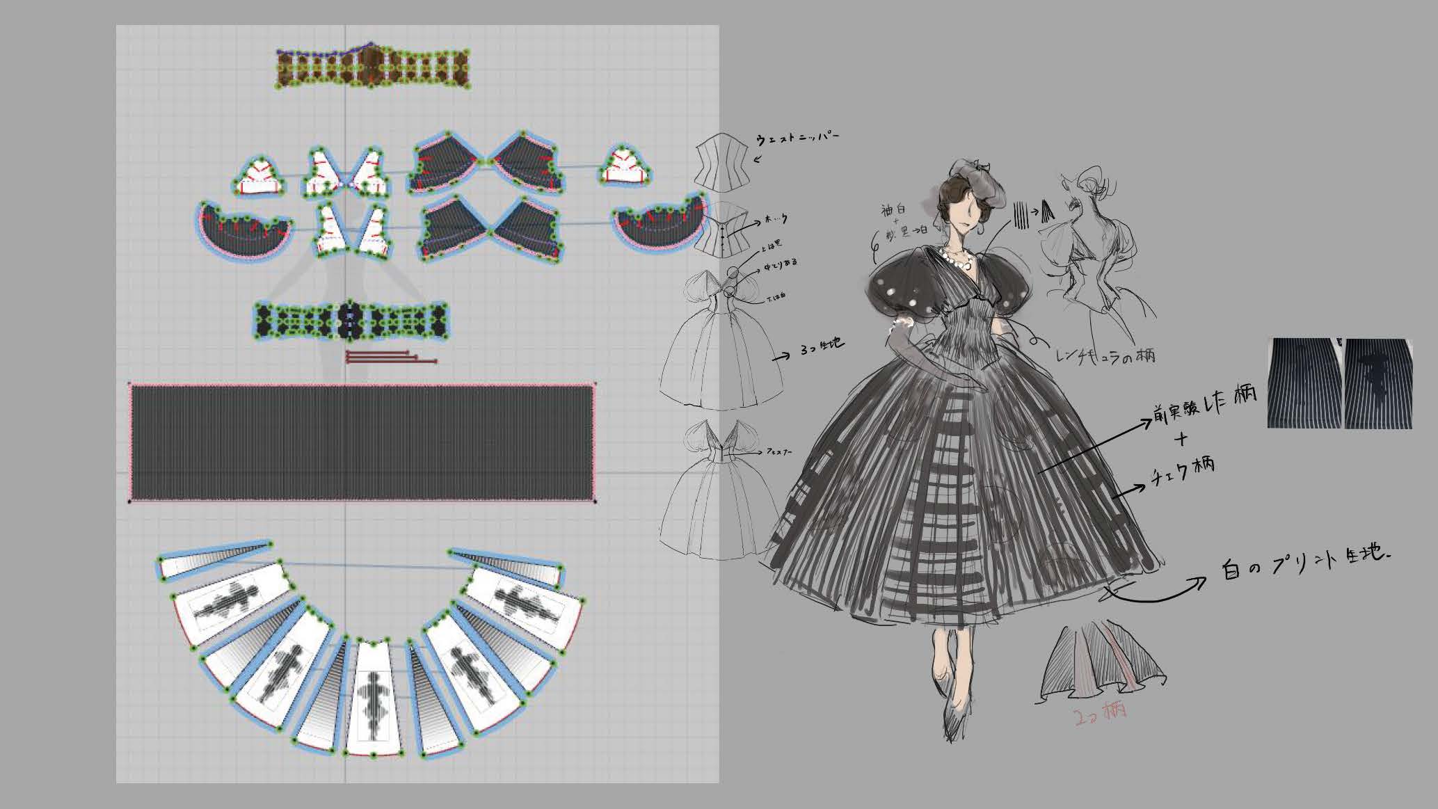 院生の研究や作品制作に アパレル3DCAD「CLO Enterprise」を活用する取り組みを積極的に行っています。 2020年度より、CLO Enterpriseの基礎オペレーションを学ぶ「アパレル3DCADⅠ」と、応用オペレーションを学ぶ「アパレル3DCADⅡ」を開講し、アパレル企業へ3Dデザイナー、3Dモデリストを輩出しております。ファッションクリエイション専攻の受講生の中より選抜された院生の作品を紹介いたします。