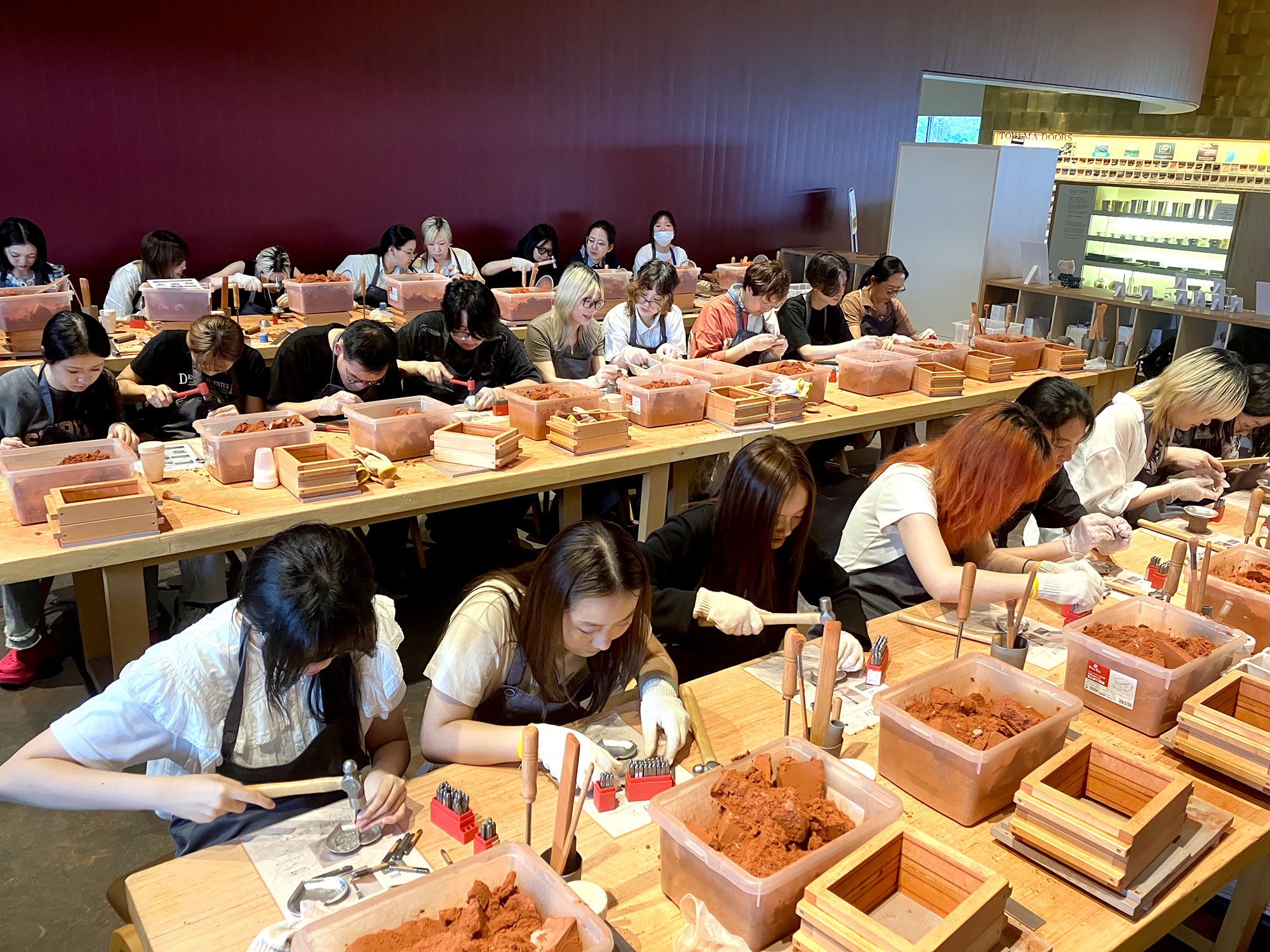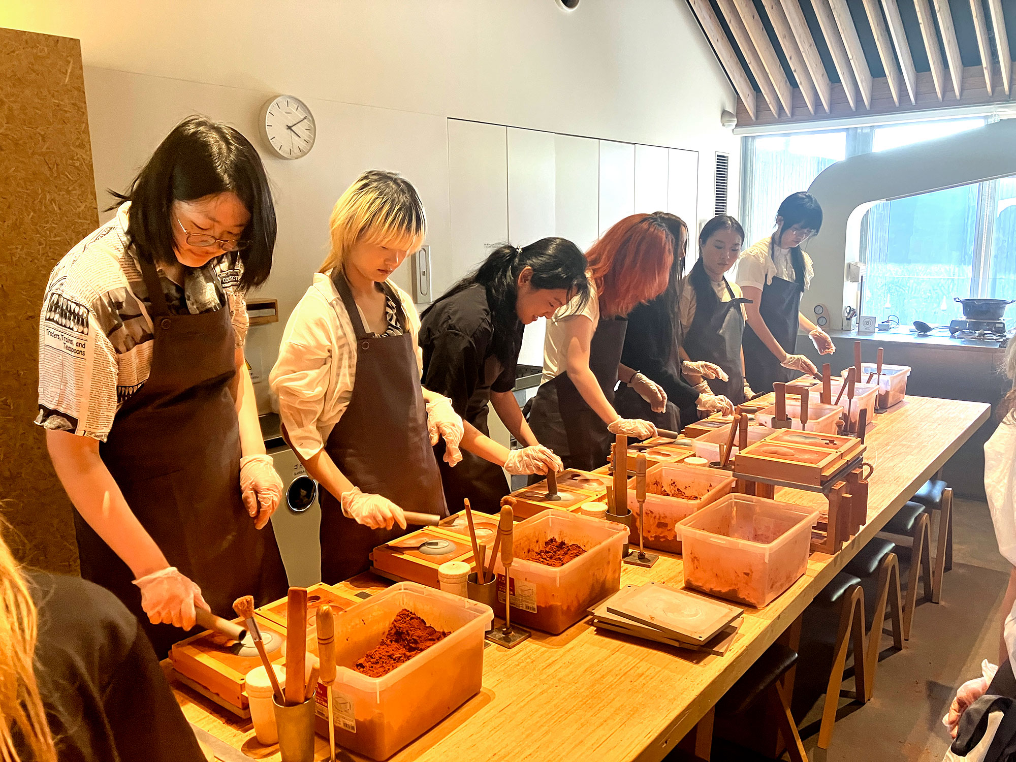 製造を工程順に見学することで、スポーツウエア製品の製造工程について理解することができ、工芸体験では自身で成型、刻印したオリジナルの鋳物製品の制作体験を通して、伝統工芸への造詣が深まりました。学生、教員ともに学びの多い2日間でした。