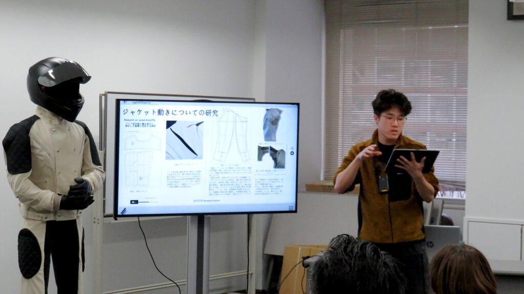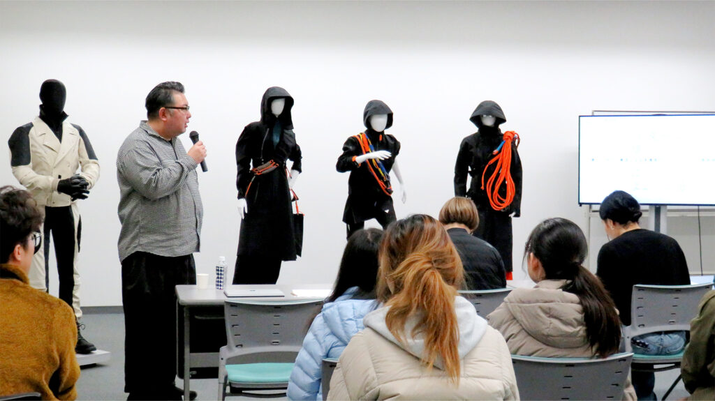 完成した作品は、2026年1月29日(木)に実施した共同研究プロジェクト成果発表会にて、株式会社ゴールドウインのパタンナーの皆様より、研究テーマ設定から作品制作プロセス、プレゼンテーションに至るまで、総合的な審査および講評をいただきました。